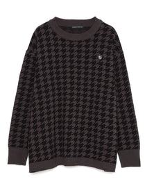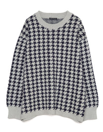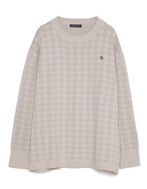 446-Houndstooth Pattern Knit Pullover Chidori Greige