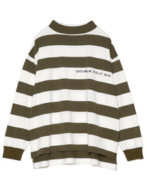 【数量限定商品】Oversize Mock Neck Stripe Long Sleeve T-Shirts Khaki