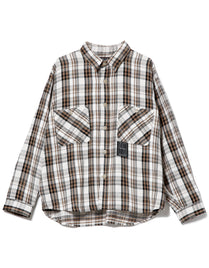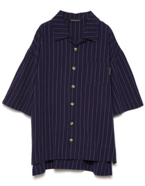【数量限定商品】DOUBLE FOUR SIX- Back Logo Linen Stripe Shirt Navy