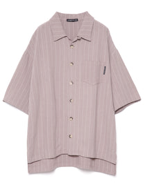 【数量限定商品】DOUBLE FOUR SIX- Back Logo Linen Stripe Shirt Greige