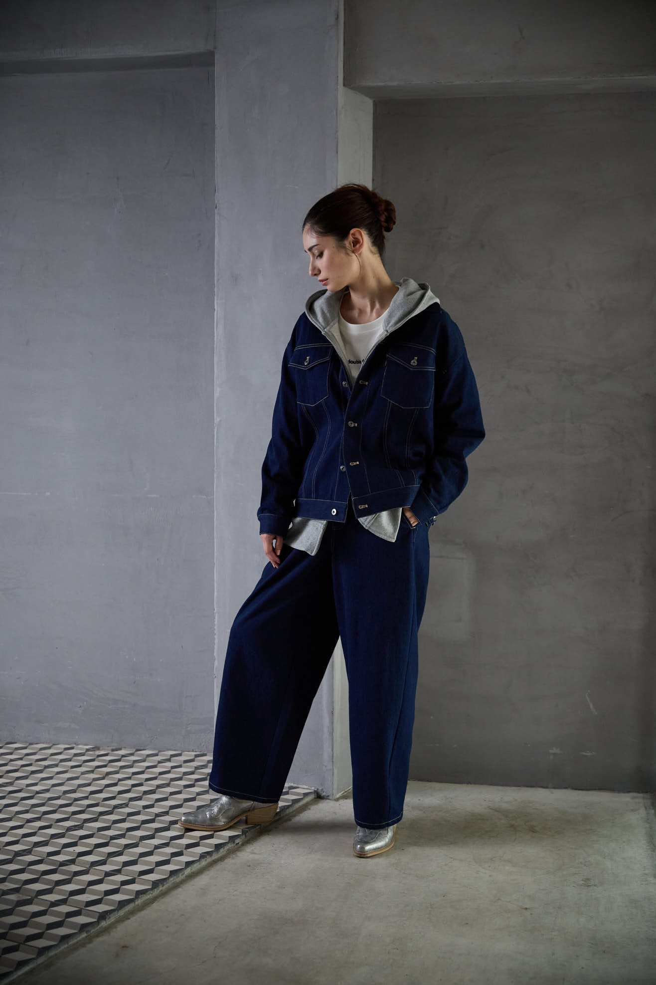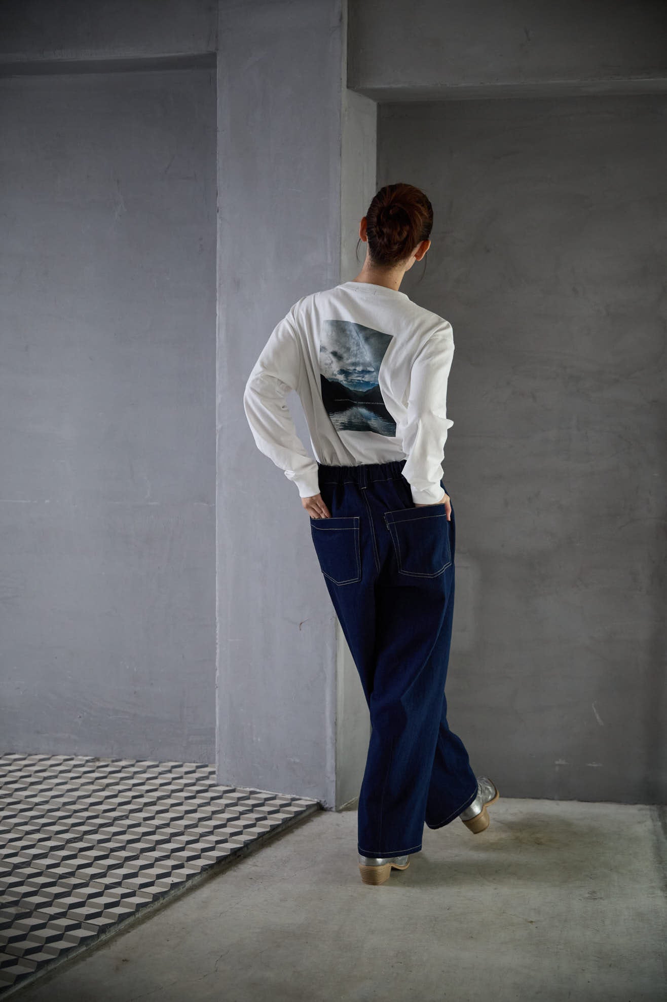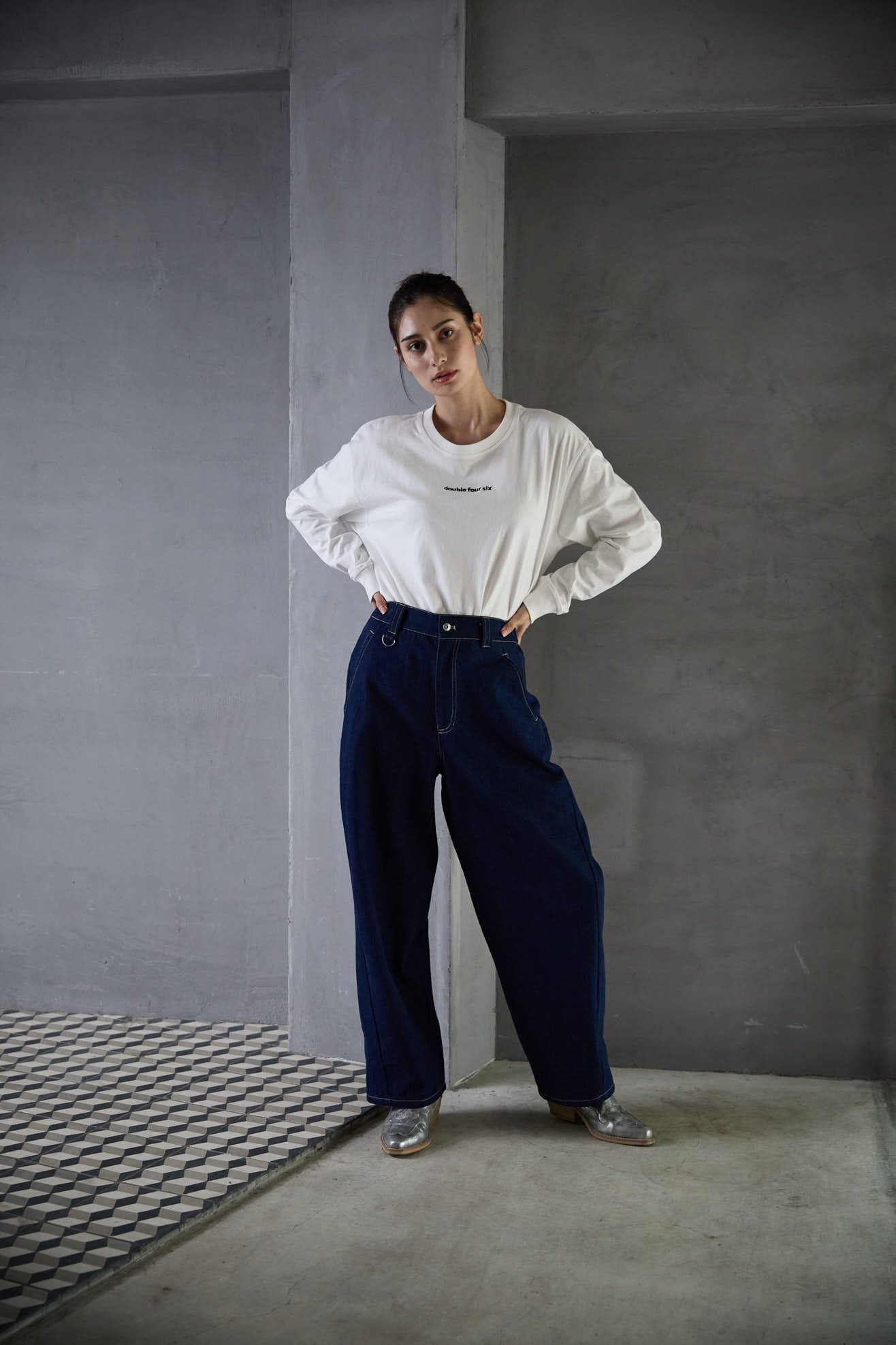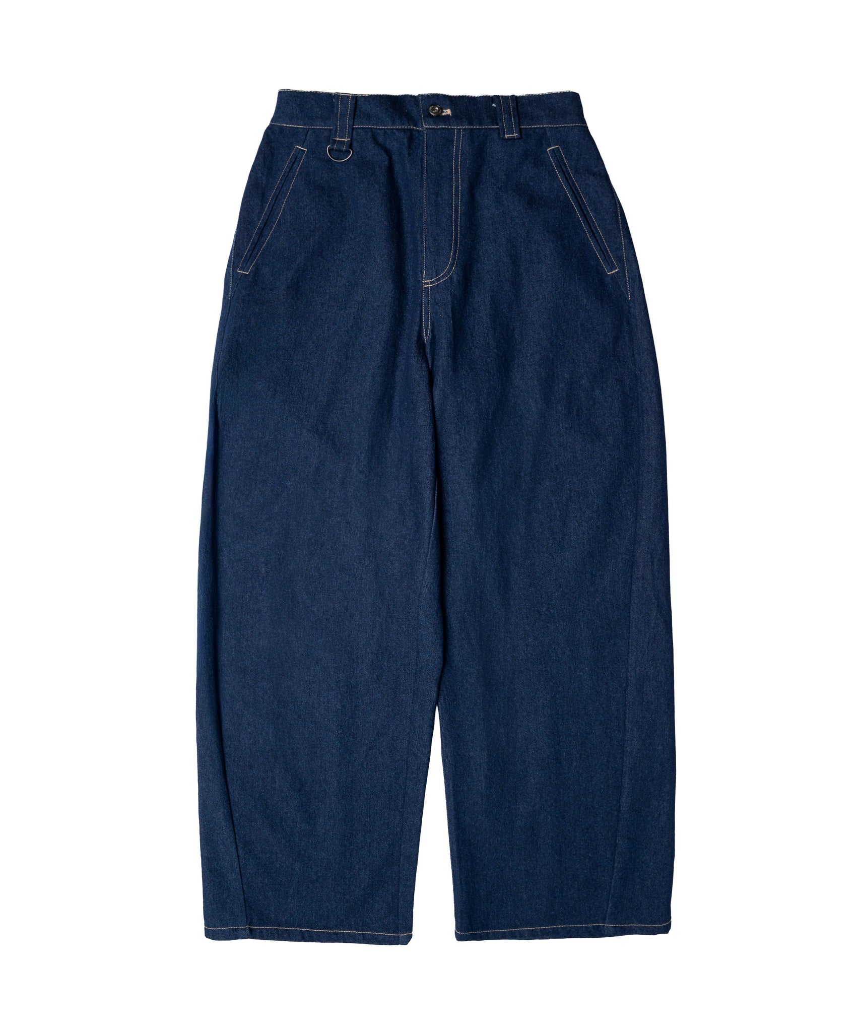 Barrel Leg One Wash Denim Pants Indigo Blue