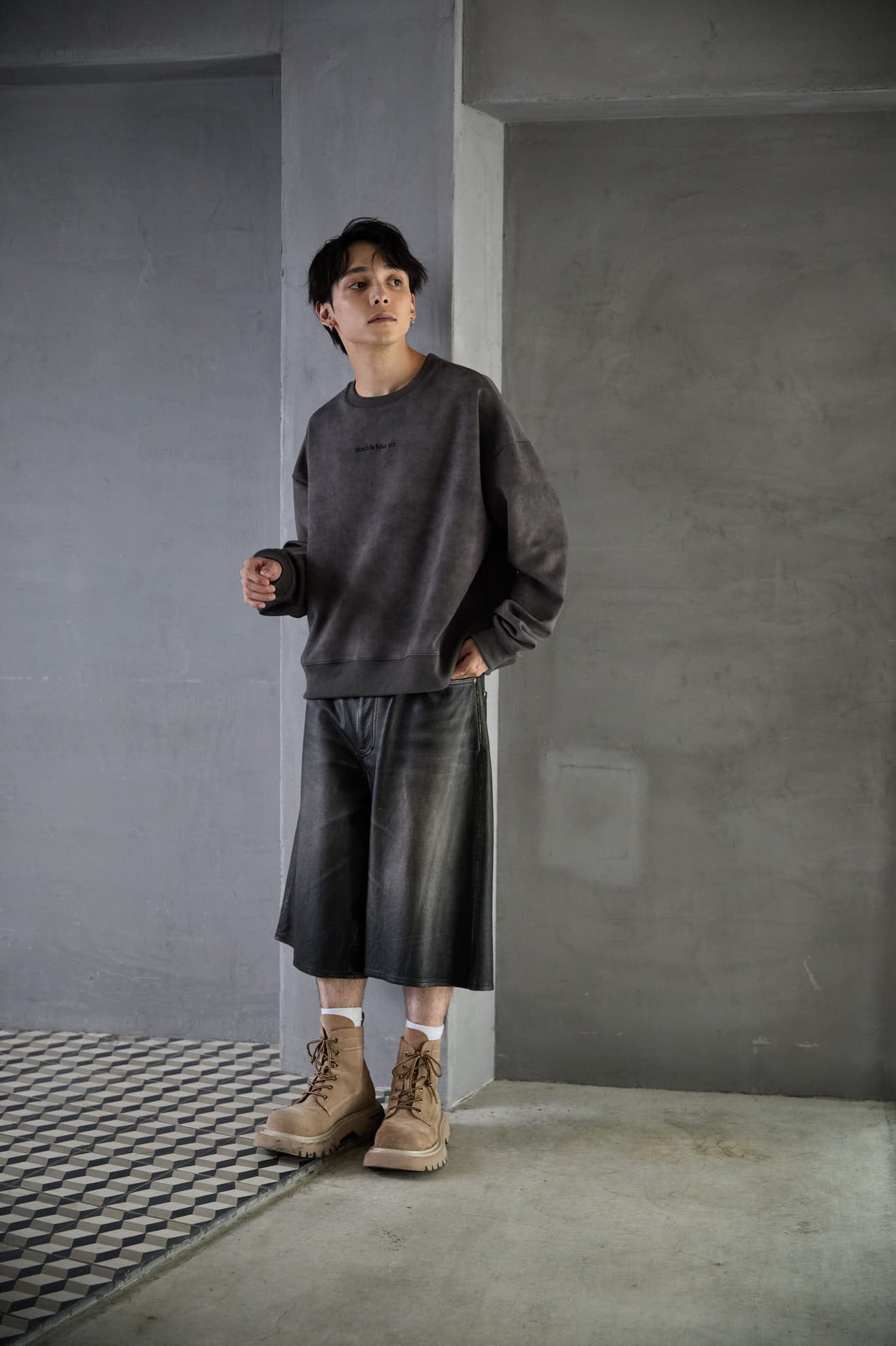 • 画像をギャラリービューアに読み込む, DOUBLE FOUR SIX- Fade Printed Jersey Sweatshirt Gray