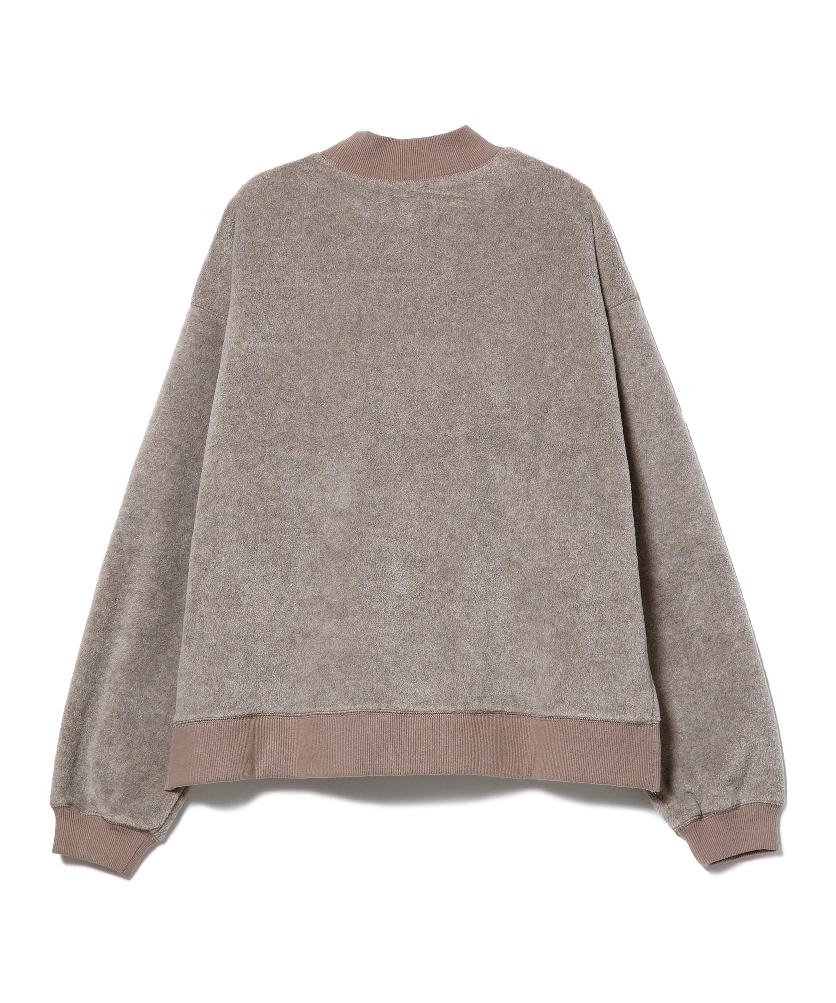 上質なレーヨン混のメルトンフリースでデザインしたモックネックのアイテム。奥行きのある杢調の温かみのあるアイテムです。